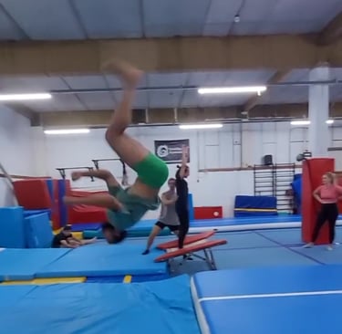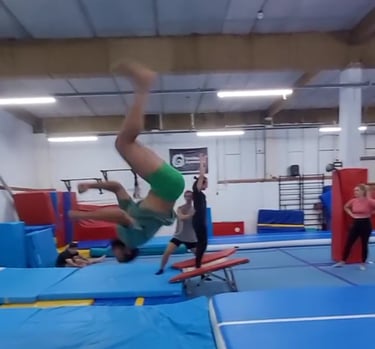 My hobbies include hosting innovative Sauna Sound Baths, performing comedy improv and learning gymnastics... Flippin' 'eck indeed.