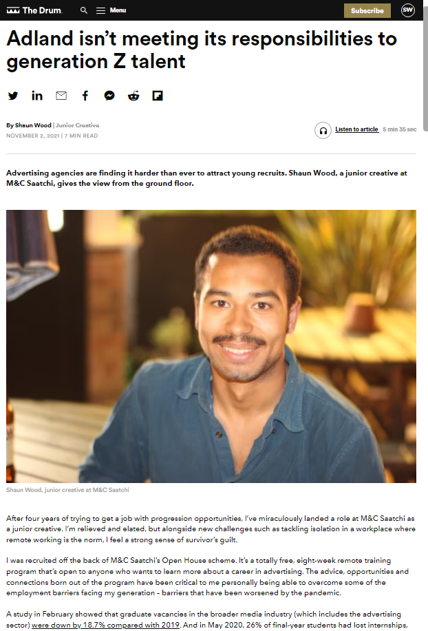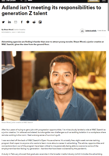 When COVID unemployment was at its highest, Ben Golik and Camilla Kemp (CCO & CEO of M & C Saatchi) wanted to hear my experience of having just joined the advertising industry.